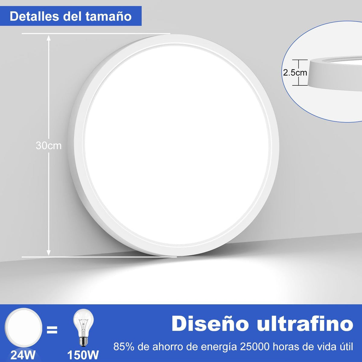 *Consume: 24W equivalen a 200w en luz convencional