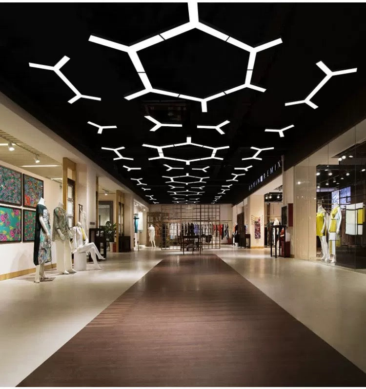 La Lámpara Colgante LED de 72W, con estructura hexagonal en acabado negro mate, combina diseño moderno y alto rendimiento lumínico para espacios contemporáneos como oficinas, salas de juntas, recepciones, showrooms o interiores residenciales con estilo.