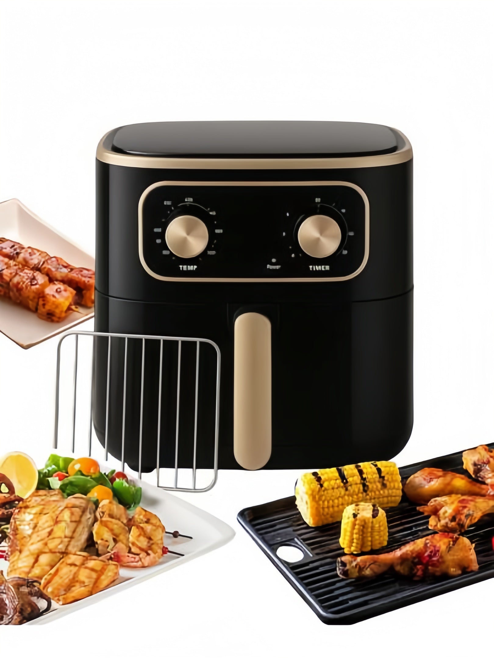 Con su control manual, puedes ajustar fácilmente la temperatura y el tiempo de cocción según el tipo de alimento que desees preparar. Es perfecta para cocinar papas fritas, alitas de pollo, vegetales asados y una variedad de snacks, todo con menos grasa y sin comprometer el sabor.