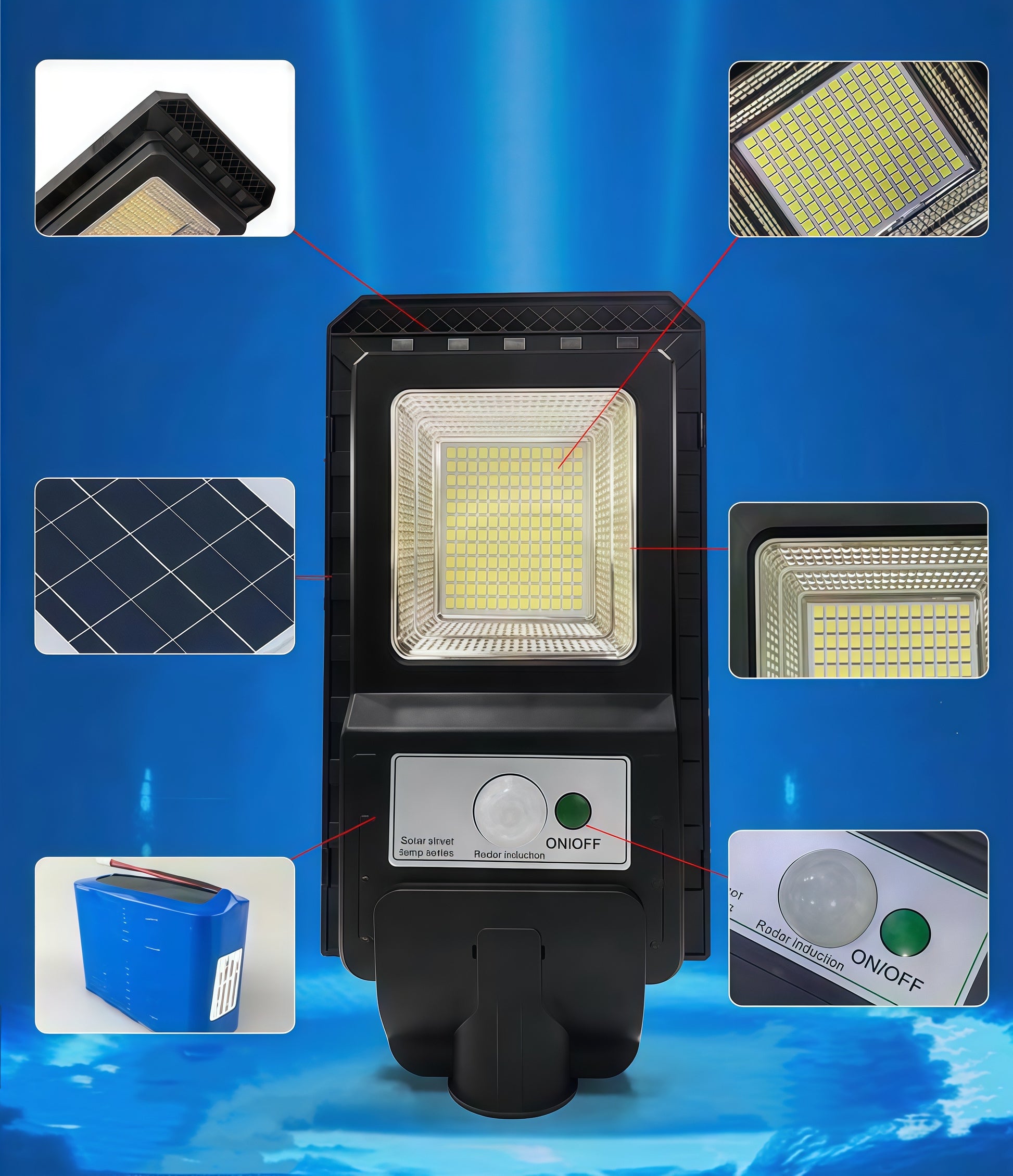 Con 60,00 lúmenes de potencia, esta lámpara todo en uno incluye panel solar y batería recargable integrados. Gracias a su diseño autónomo, no requiere conexión eléctrica ni instalaciones complicadas.