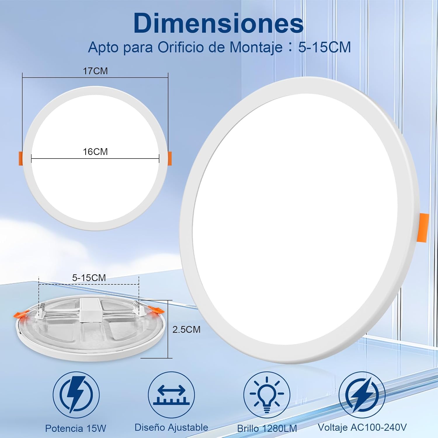 PLAFÓN PARA EMPOTRAR 15W AJUSTABLE BLANCO