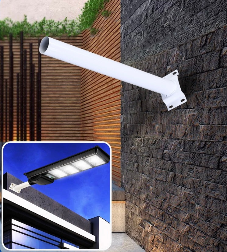 Compatible con lámparas solares o eléctricas de alumbrado público. Su estructura curva permite una proyección óptima de la luz sobre calles, entradas, jardines o zonas industriales.