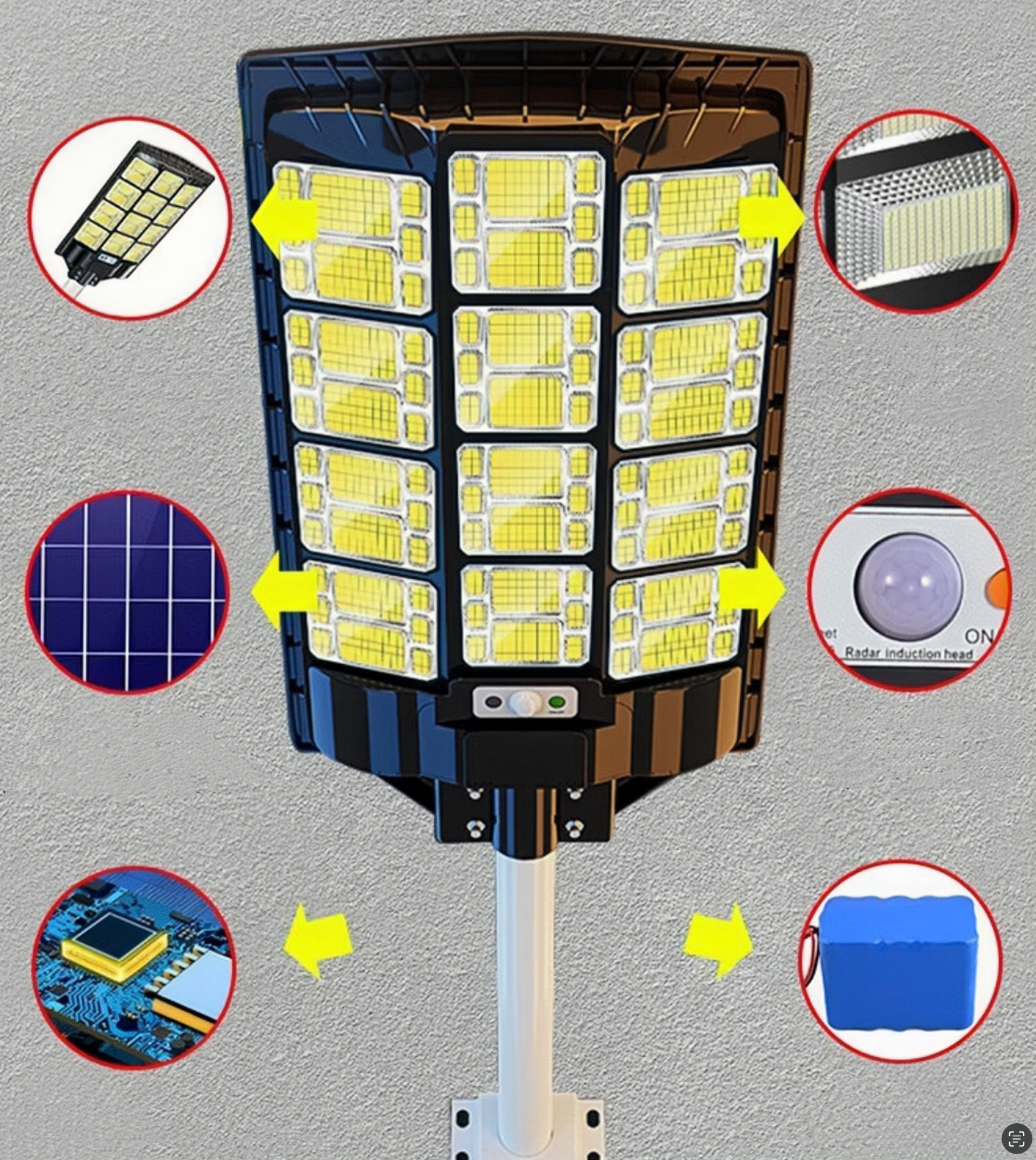 Con 30,000 lúmenes de potencia, esta lámpara todo en uno incluye panel solar y batería recargable integrados. Gracias a su diseño autónomo, no requiere conexión eléctrica ni instalaciones complicadas.