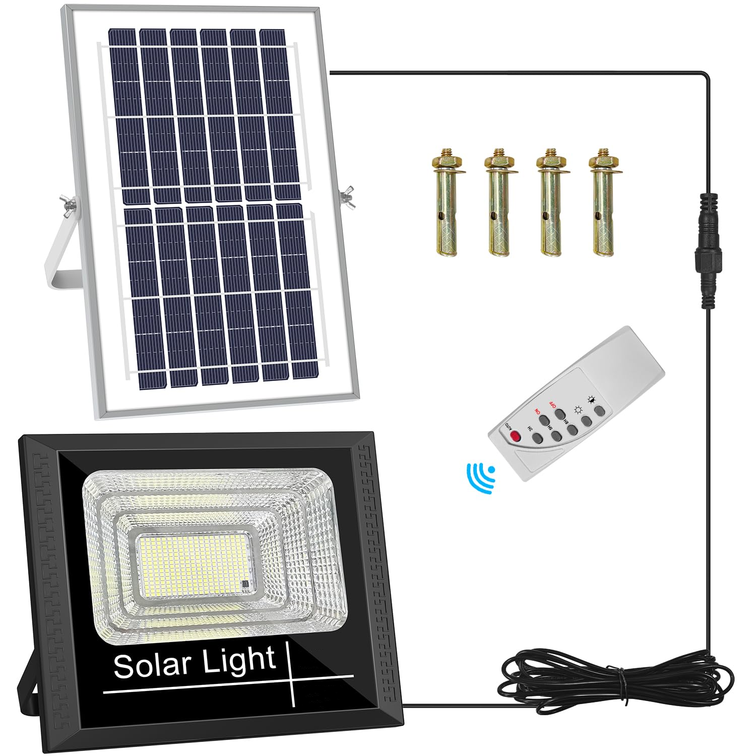 Este modelo todo en uno integra panel solar y batería recargable, eliminando la necesidad de cableado. Además, incluye control remoto para encender, apagar o programar la lámpara a distancia con facilidad.