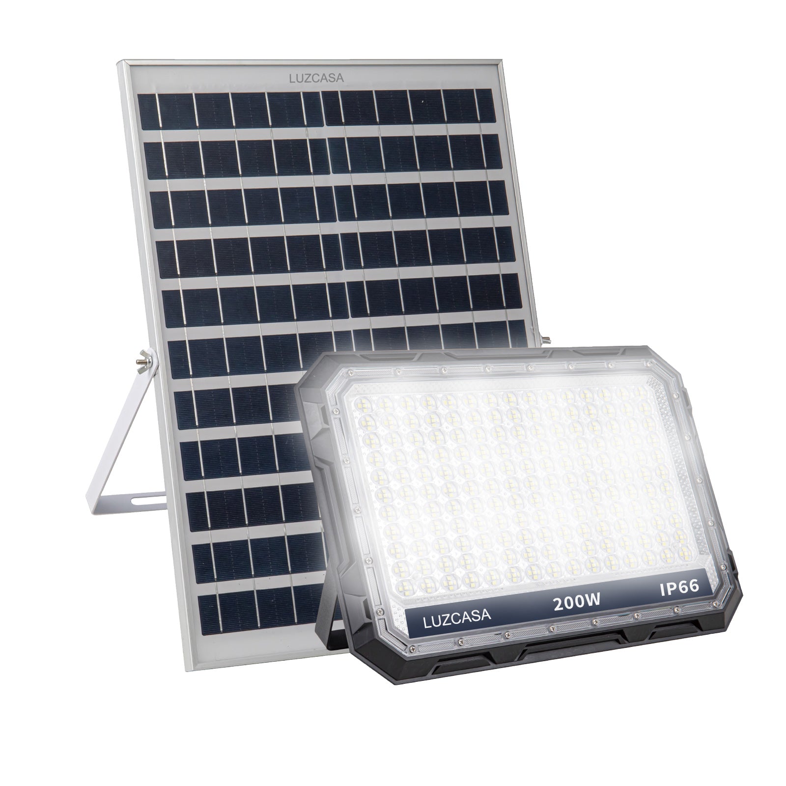 Aprovecha la energía solar para iluminar tus espacios exteriores de forma eficiente. El reflector solar LED LUZCASA de 200W con 20,000 lúmenes es ideal para jardines, plazas, colegios, patios o cualquier área al aire libre que necesite luz potente sin depender de la red eléctrica.