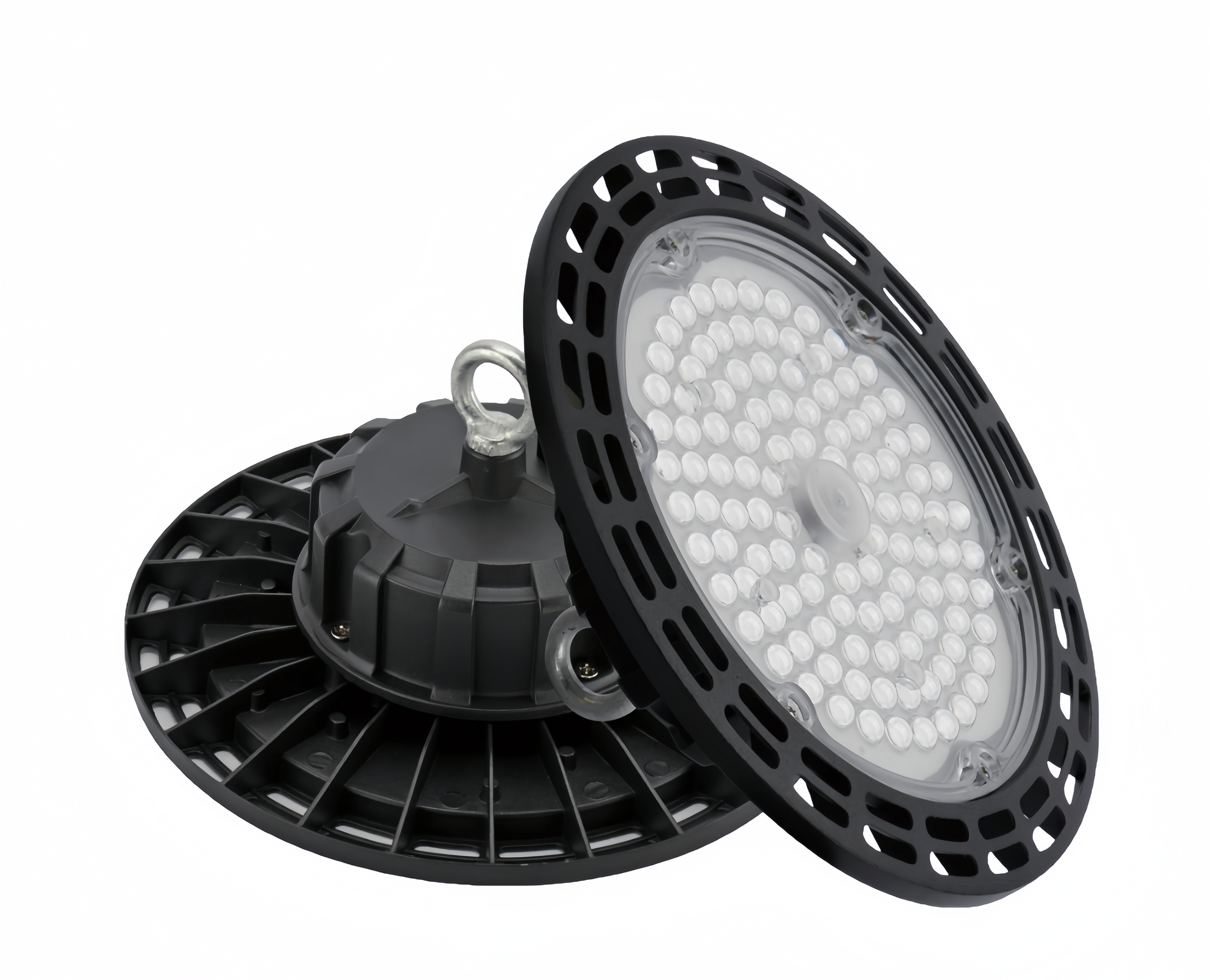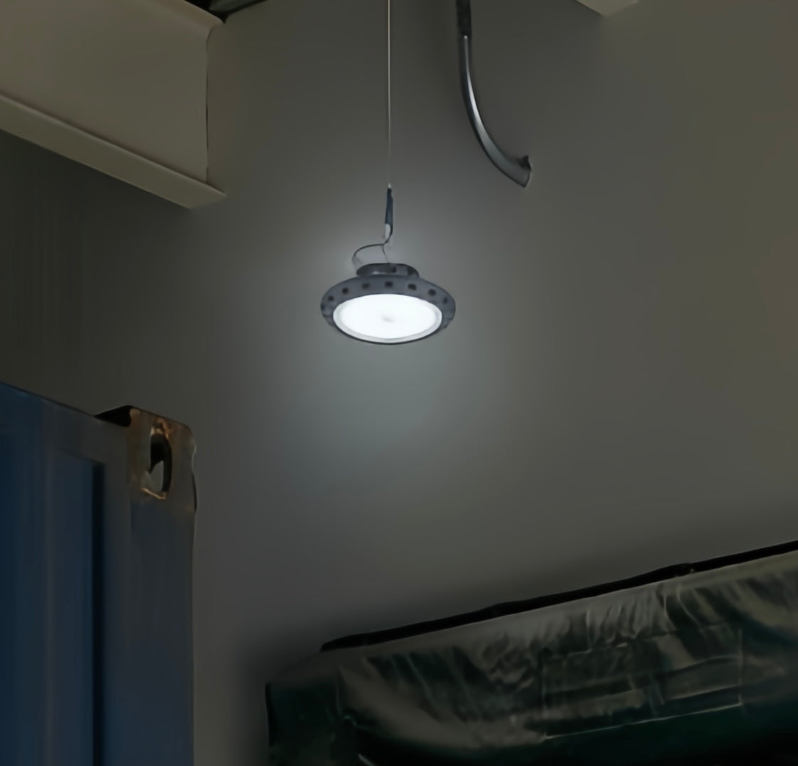 La lámpara UFO LED High Bay de 150W de LUZCASA está diseñada para ofrecer iluminación intensa, uniforme y resistente en espacios industriales y comerciales de gran altura, como almacenes, fábricas, talleres, naves o centros logísticos.