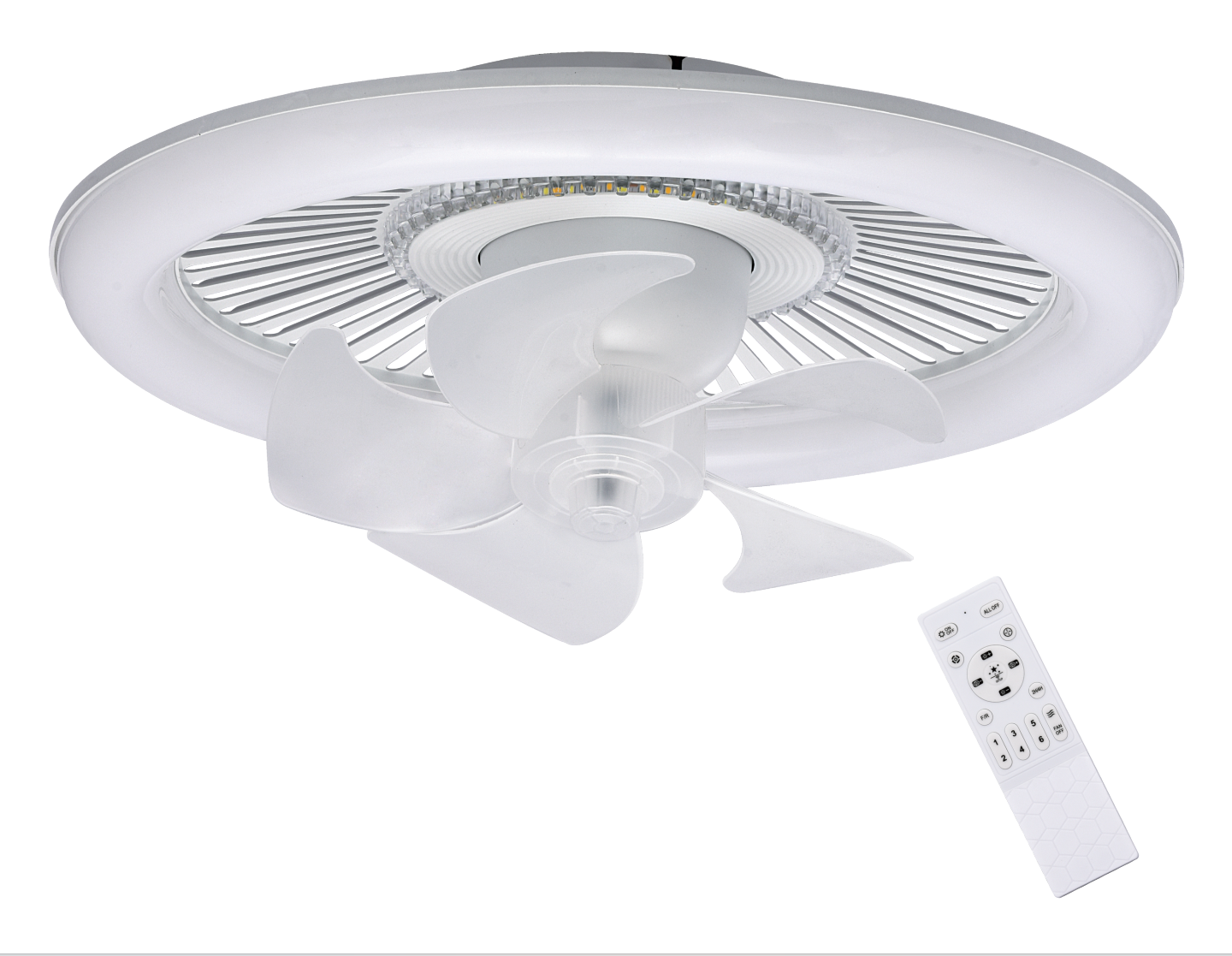 Puede ser controlado fácilmente mediante control remoto o interruptor de pared, con funciones independientes para luz y ventilador.